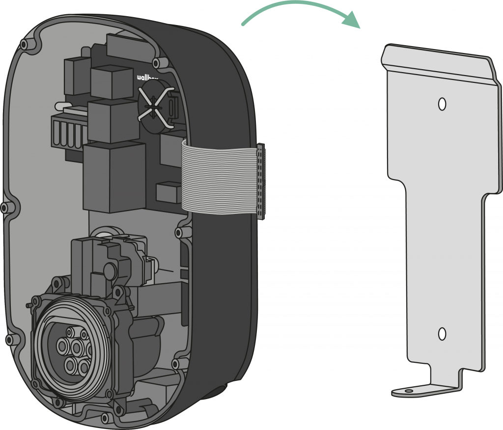- Lift your charger and hang it from the top of the wall plate. Secure the charger to the wall plate with the appropriate screws, avoiding over-tighten.