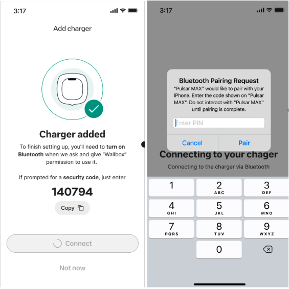 - Åpne Wallbox -appen og koble til laderen. (Hvis du blir bedt om det, godtar du sammenkoblingsforespørselen for å koble deg til enheten).
